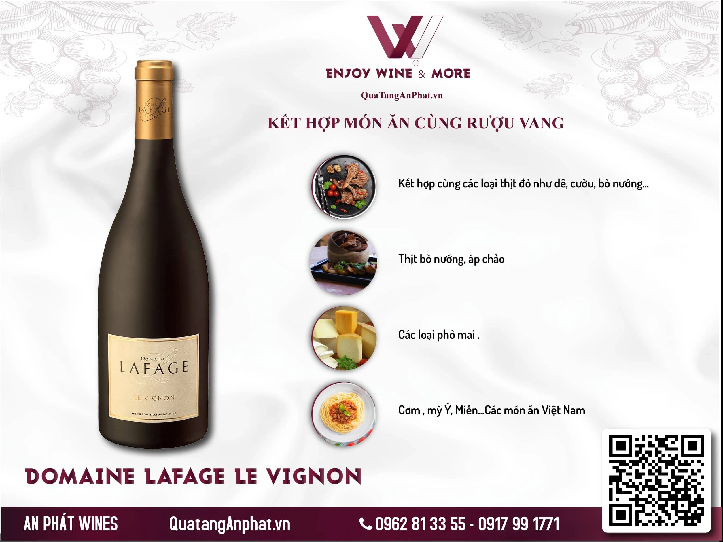 Kết hợp món ăn phù hợp với Rượu vang đỏ DOMAINE LAFAGE LE VIGNON