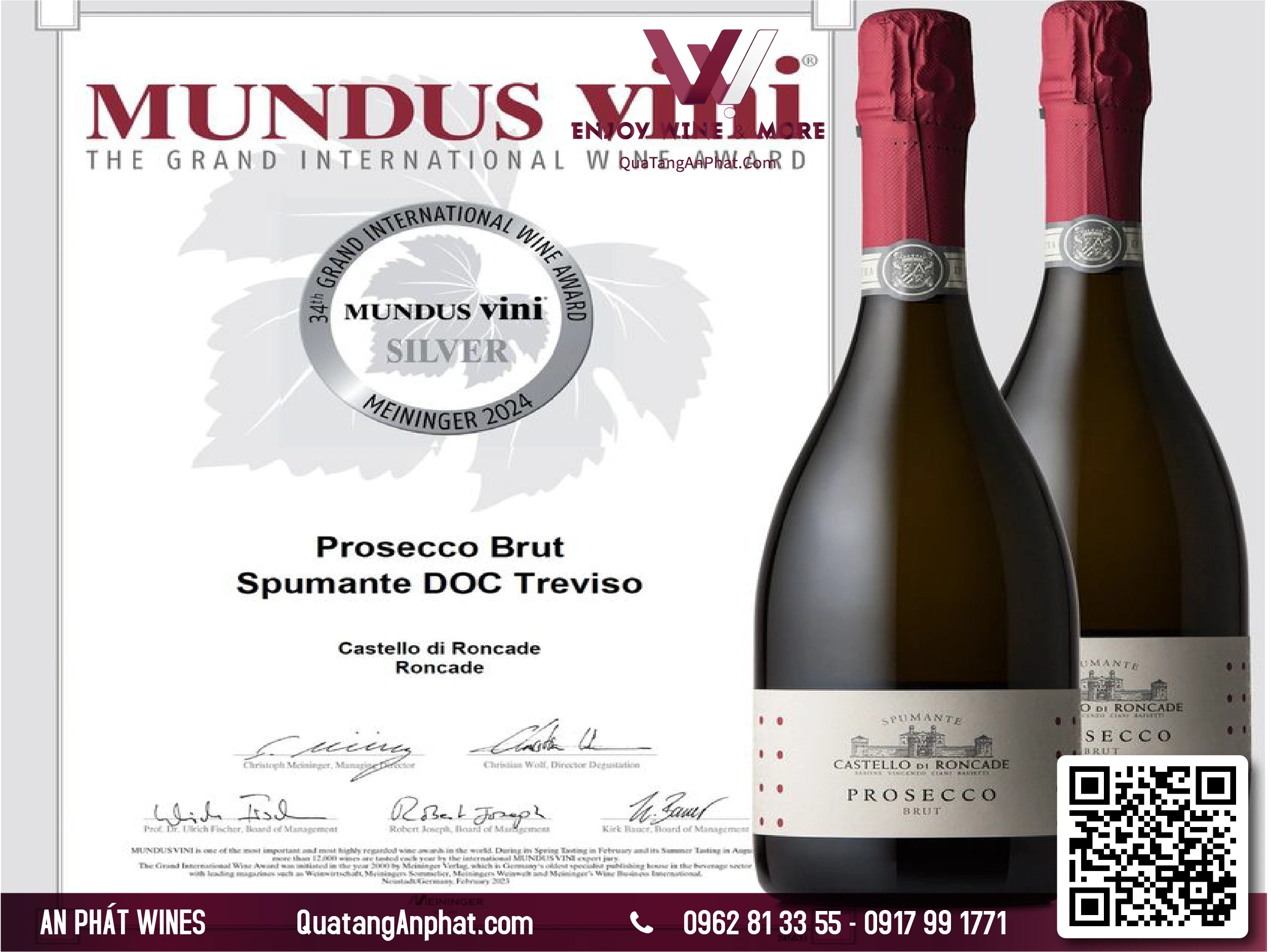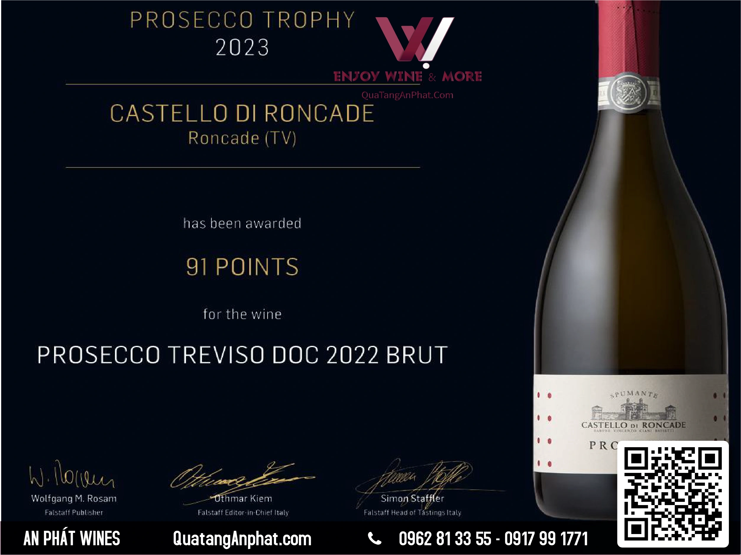 Rượu vang sủi bọt PROSECCO CASTELLO DI RONCADE BRUT Italy 750ml 11,5% Sparkling wine DOC treviso |