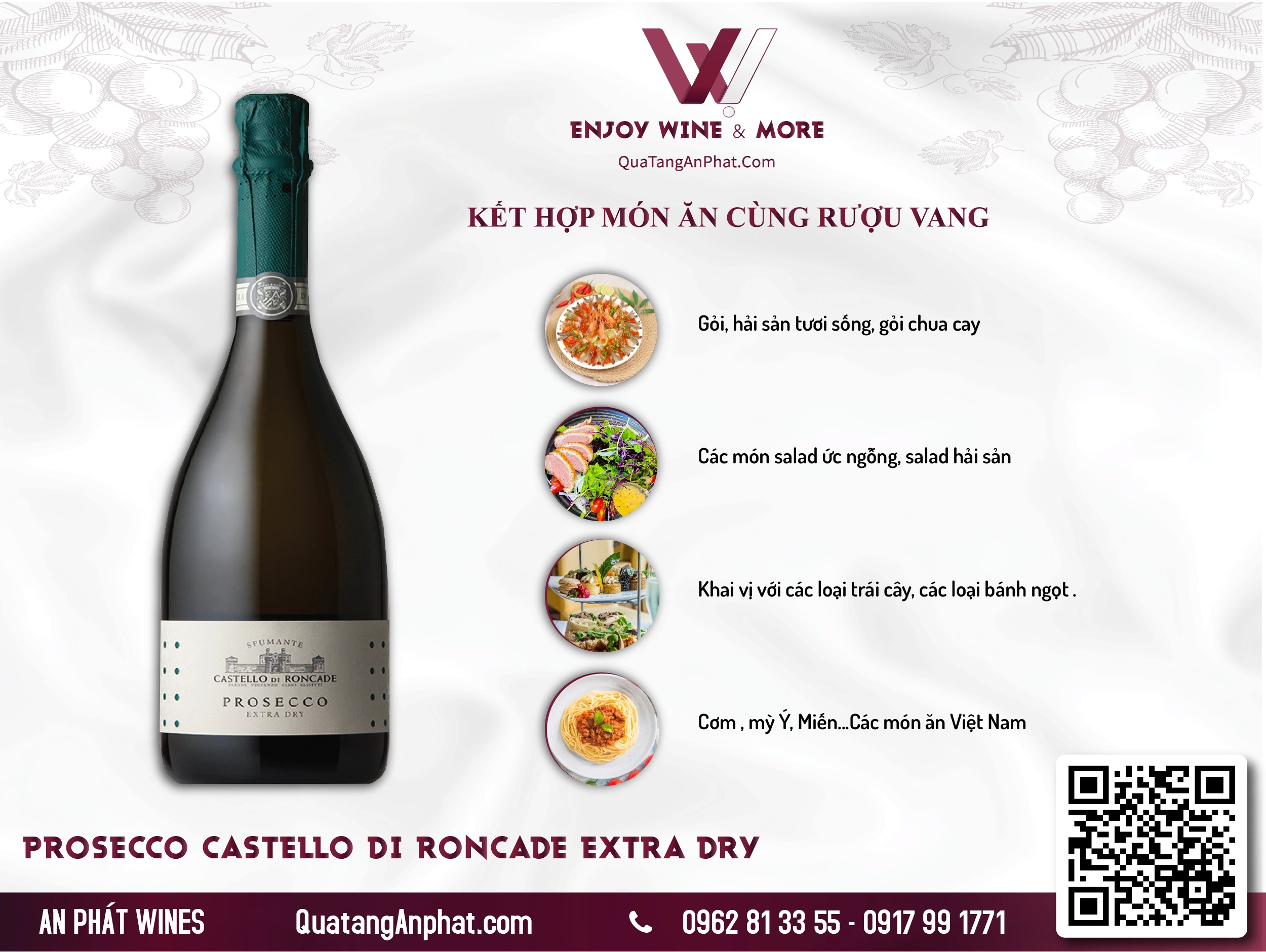 Kết hợp món ăn phù hợp với Rượu vang sủi bọt Prosecco Castello di Roncade Extra Dry Italy 750ml 11,5%