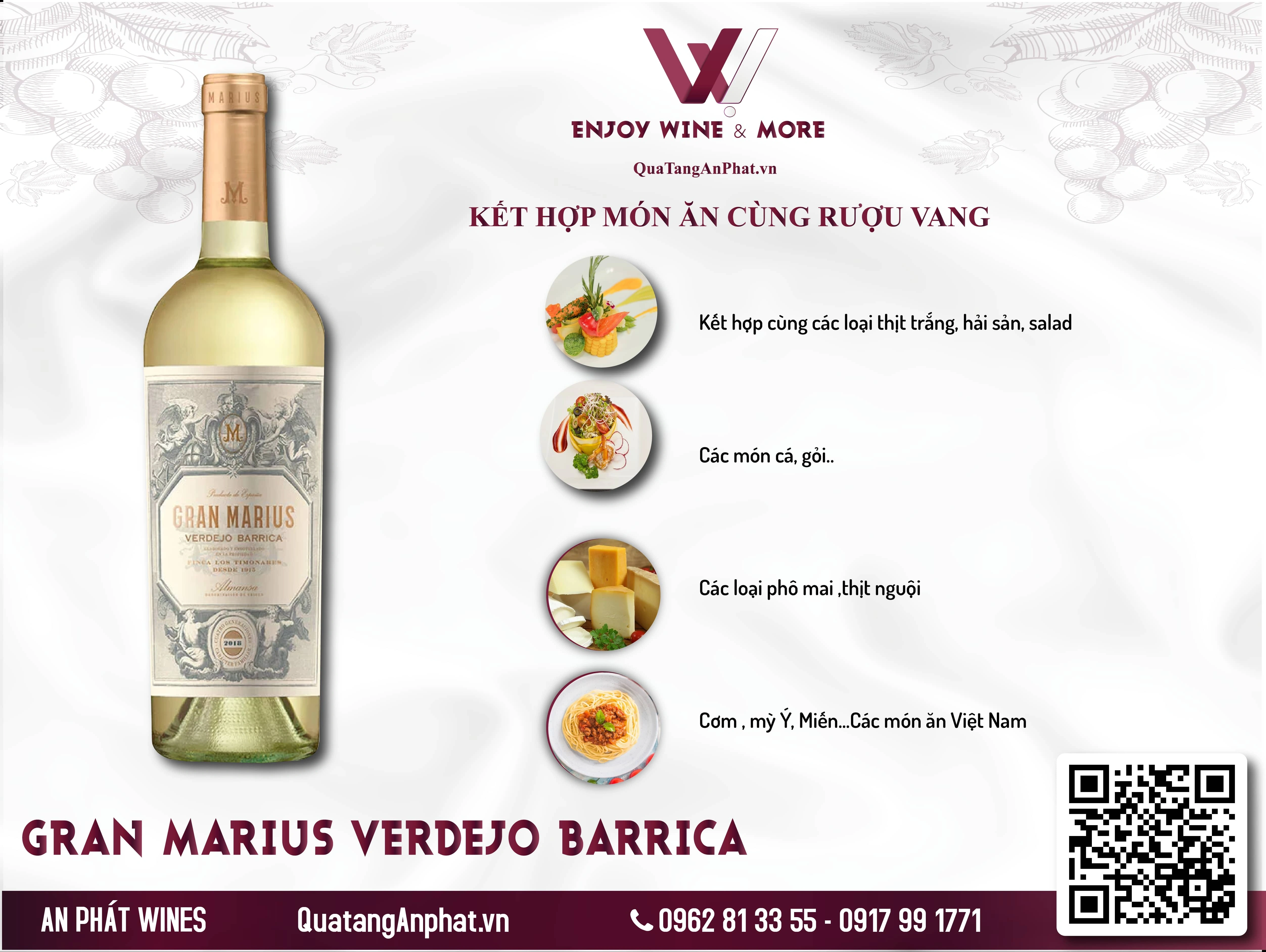 Rượu vang trắng Gran Marius Verdejo Barrica Spain 750ml 13.5% |